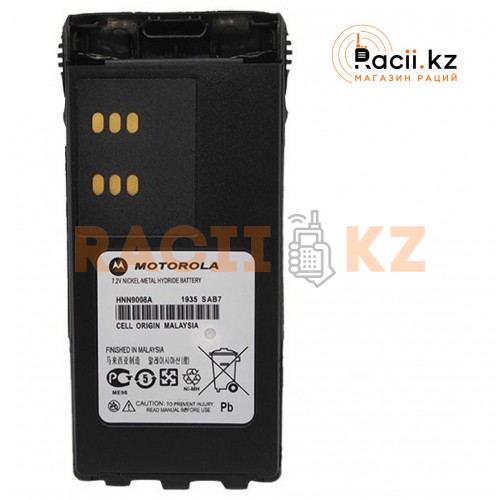 Аккумулятор HNN9008A создан специально для радиостанций Motorola GP328, GP338 и PTX760. Его номинальное напряжение 7,5 В и ёмкость 1350 мА·ч обеспечивают до 10 часов работы при стандартном цикле 90/5/5. Конструкция устойчива к нагрузкам и рассчитана на 400 циклов зарядки-разрядки. Аккумулятор сохраняет высокую эффективность даже при низких температурах, не теряя своих свойств до –20 °C. Для поддержания оптимальной работы требуется профилактическое обслуживание раз в 4–6 месяцев.
