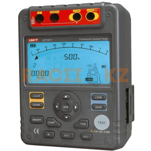 UNI-T UT511 позволяет измерять сопротивление изоляции с тестовым напряжением до 1000 В. Прибор поддерживает измерение постоянного и переменного напряжения, прозвонку цепей, а также функцию удержания данных для удобства анализа. Большой ЖК-дисплей с подсветкой и индикацией разряда батареи обеспечивает комфортную работу в любых условиях. Дополнительные функции автоматического отключения и защиты от перегрузки делают использование прибора надёжным и безопасным.