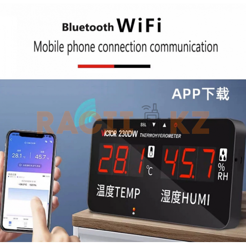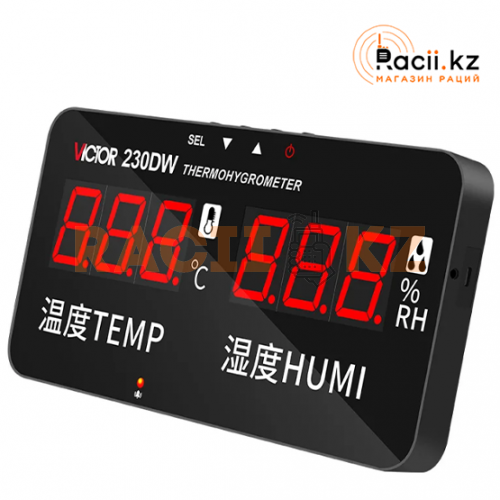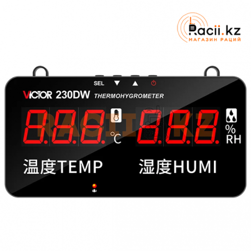 Цифровой термогигрометр VICTOR VC230DW — надёжный прибор для измерения температуры и влажности воздуха. Подходит для бытового, офисного и промышленного использования, когда важно контролировать микроклимат помещения, влажность и комфорт.