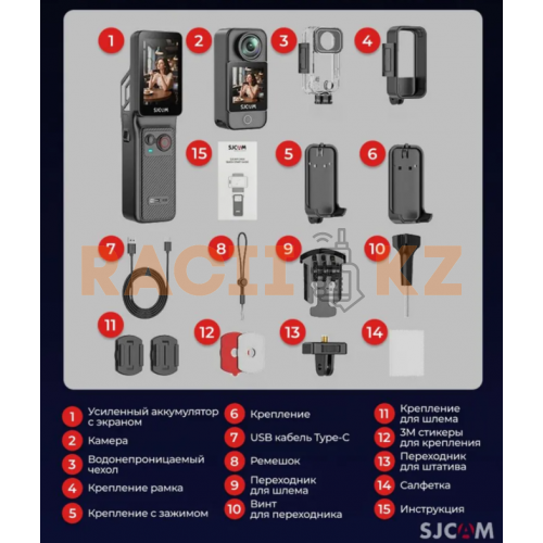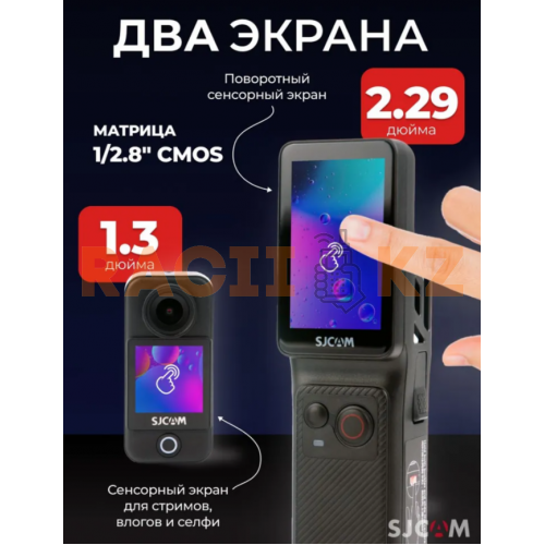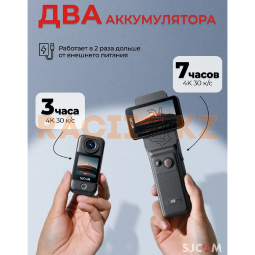 Камера поддерживает съемку видео в формате 4K при 30 кадрах в секунду и фотографирование с разрешением до 16 МП. 6-осевая гироскопическая стабилизация обеспечивает плавность видео. Два сенсорных экрана позволяют легко управлять камерой и отслеживать съемку, а водонепроницаемый кейс обеспечивает погружение до 30 метров. Двухдиапазонный Wi-Fi позволяет быстро подключаться к приложению SJCAM Zone для управления и передачи данных.