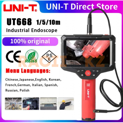 Эндоскоп UNI-T UT668 (5 м) — это надёжный инструмент для диагностики и осмотра труднодоступных мест. Благодаря высокому качеству изображения и гибкому зонду длиной 5 метров, прибор идеально подходит для обслуживания двигателей, трубопроводов, оборудования и других механизмов.