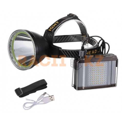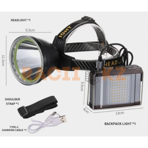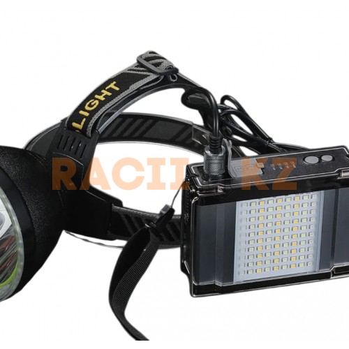 Фонарь T101 оснащён аккумулятором ёмкостью 20000 мАч, который обеспечивает до 12 часов непрерывного освещения. Конструкция включает два независимых источника света: налобную фару и модуль для рюкзака с широкой светодиодной полосой.
