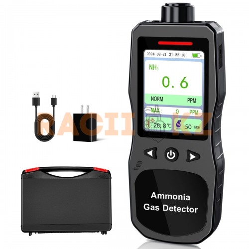 Портативный газоанализатор аммиака — профессиональный прибор для точного мониторинга концентрации NH3 в реальном времени. Устройство измеряет уровень аммиака в диапазоне 0–200 ppm с высокой точностью ±5% и разрешением 0,1 ppm. Цветной 2,8-дюймовый дисплей отображает не только уровень газа, но и температуру с влажностью, обеспечивая полную картину состояния воздуха. Благодаря встроенному аккумулятору 2500 мА·ч прибор работает до 16 часов без подзарядки. Это надёжный инструмент для ферм, животноводческих комплексов и промышленных предприятий, где важно контролировать чистоту воздуха.