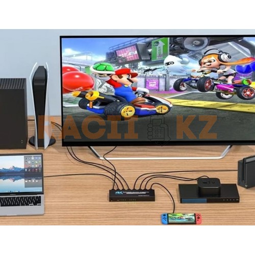 HDMI-переключатель 7x1 позволяет подключить одновременно до семи устройств — игровых консолей, ТВ-приставок, ноутбуков, компьютеров, медиаплееров — и выводить изображение на один телевизор или монитор. Модель поддерживает разрешение 4K при 60 Гц, обеспечивая чёткую, стабильную и плавную картинку без задержек. Переключение между источниками выполняется с помощью кнопок или пульта дистанционного управления, что делает использование удобным и практичным. Устройство подходит для дома, офиса, конференций и мультимедийных систем.