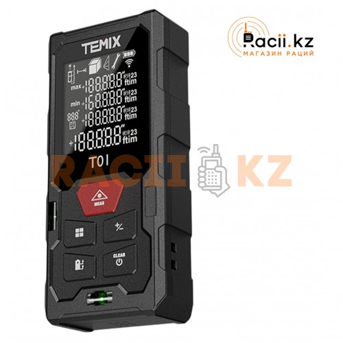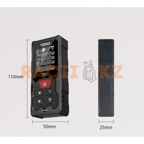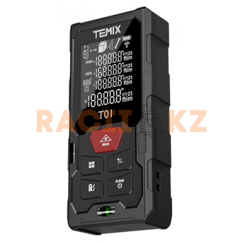Temix — это лазерная рулетка с максимальной дальностью измерения 50 метров. Поддерживает расчёт площади, объема и непрямых расстояний. Лазер высокой точности обеспечивает стабильные результаты с минимальной погрешностью. Устройство работает от батареек, имеет яркий экран с подсветкой и простое управление. Незаменимый инструмент для измерений в квартирах, офисах, мастерских и других помещениях.