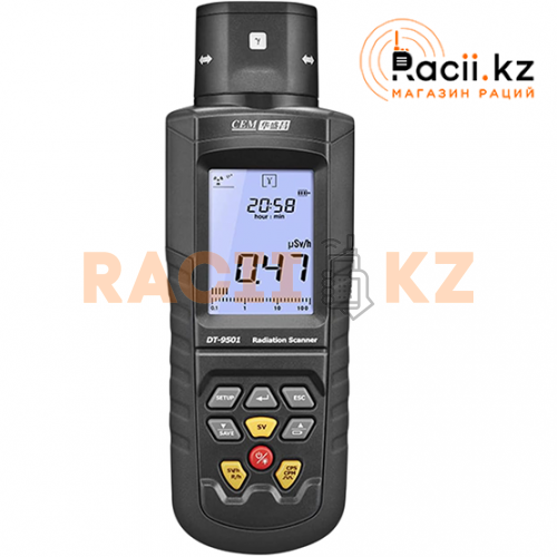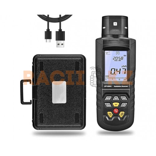 Многофункциональный цифровой сканер DT-9501 предназначен для бытового и профессионального радиационного контроля. Прибор сочетает в себе функции счётчика Гейгера и детектора различных типов ионизирующего излучения, отличается высокой чувствительностью, наличием четырёх датчиков и поддержкой беспроводной передачи данных по Bluetooth.