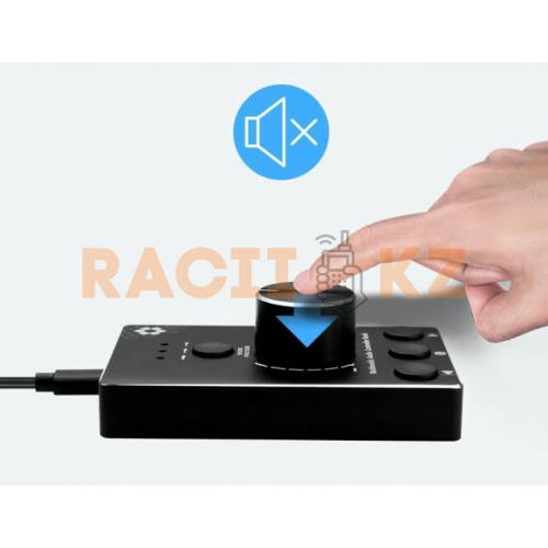 USB-контроллер громкости A001 представляет собой компактное внешнее устройство с поворотной ручкой и функциональными кнопками для управления мультимедийными операциями. Он подключается к компьютеру через USB и работает по принципу Plug and Play, не требуя установки драйверов. Основная ручка отвечает за плавную регулировку громкости и может использоваться как кнопка для мгновенного включения или выключения звука. Дополнительные кнопки обеспечивают управление треками и паузой, что делает устройство удобным для работы, стриминга, монтажа и повседневного использования.