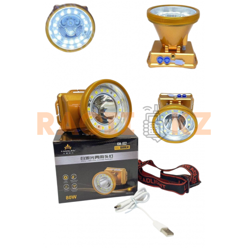 Фонарь выполнен в прочном пластиковом корпусе золотистого цвета и оснащён холодным и тёплым светом. Один яркий режим позволяет не отвлекаться на переключения и сосредоточиться на задаче. Весит всего 250 граммов, что делает его комфортным для длительного ношения на голове. Комплект включает сам фонарь, ремешок и шнур для зарядки. KM-102 — это идеальный выбор для тех, кому нужна простота, мощность и дальность освещения.