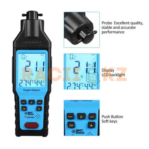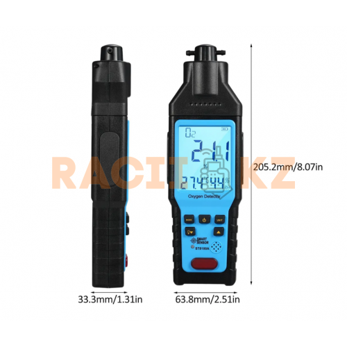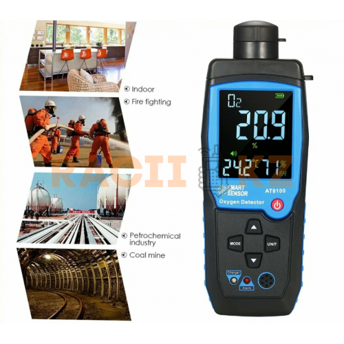 Портативный анализатор кислорода SMART SENSOR AT8100 — профессиональный измеритель концентрации кислорода (O₂) в воздухе, предназначенный для контроля безопасности в помещениях и на промышленных объектах. Устройство использует электрохимический принцип работы, обеспечивая быстрые и точные измерения.