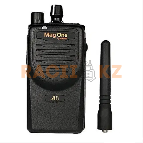 Motorola Mag One A8 — портативная рация, предназначенная для стабильной и надёжной радиосвязи. Радиостанция поддерживает 16 каналов для эффективной организации групповой связи. Переключаемый шаг канала 12,5 / 25 кГц обеспечивает совместимость с узкополосными и широкополосными системами. Прочный корпус с металлической рамой и ударостойким поликарбонатом соответствует стандарту EIA 603B. Рация устойчива к дождю по стандарту IPX4 и предназначена для эксплуатации в сложных условиях.