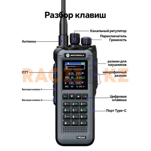 Рация Motorola P8260 работает в диапазонах VHF и UHF, обеспечивая гибкость при организации радиосвязи и совместимость с различным оборудованием. Максимальная выходная мощность до 20 Вт позволяет поддерживать уверенную связь на расстоянии до 15 км на открытой местности.