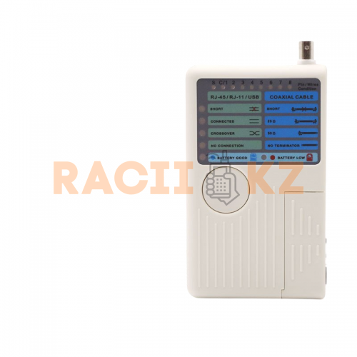 Тестер JLS-3468 — идеальное решение для быстрого и точного тестирования кабелей в офисе или на производстве. Он поддерживает четыре типа кабелей: RJ-45, RJ-11, USB и коаксиальные BNC. LED-индикаторы показывают состояние соединения, включая короткое замыкание и перекрестные подключения. Компактный и лёгкий, прибор удобно носить с собой и использовать в любых условиях. С JLS-3468 вы быстро выявите неполадки и сэкономите время на обслуживании сетевого оборудования.