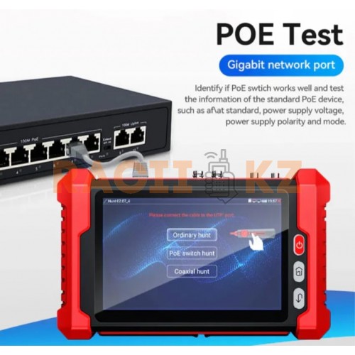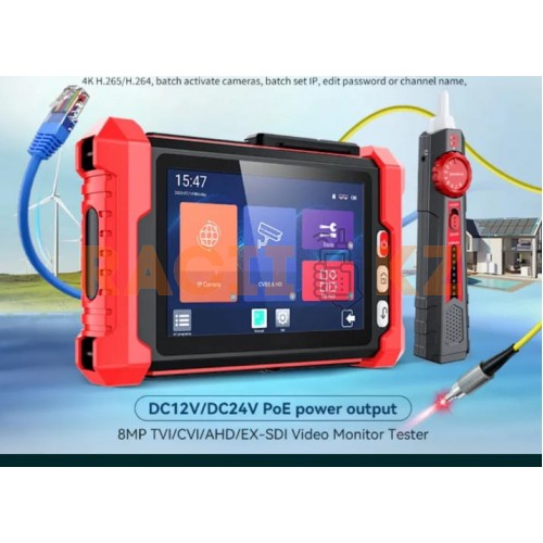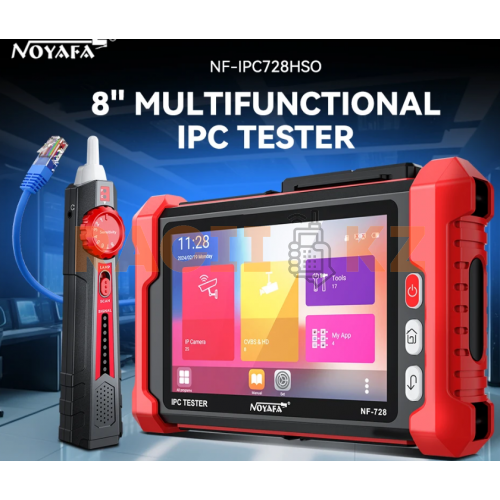 Тестер камер видеонаблюдения Noyafa NF-IPC728S — профессиональный многофункциональный прибор для монтажа, настройки и диагностики IP-, HD- и аналоговых систем видеонаблюдения. Устройство оснащено 8-дюймовым сенсорным IPS-экраном с разрешением 1920×1200, двумя гигабитными Ethernet-портами с поддержкой PoE, широким набором сетевых и кабельных тестов, а также ёмким аккумулятором для полноценной работы в полевых условиях. Подходит для сервисных инженеров, монтажных организаций и технических специалистов.