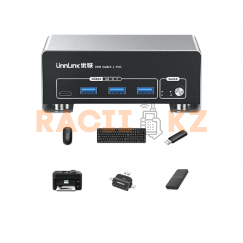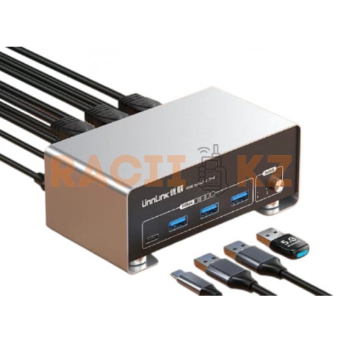 KVM-переключатель Unnlink предназначен для одновременной работы с двумя компьютерами и двумя мониторами с использованием одного комплекта периферийных устройств. Устройство подходит для профессиональных рабочих станций, офисов, студий и игровых сетапов, где требуется высокая чёткость изображения и быстрое переключение между системами.