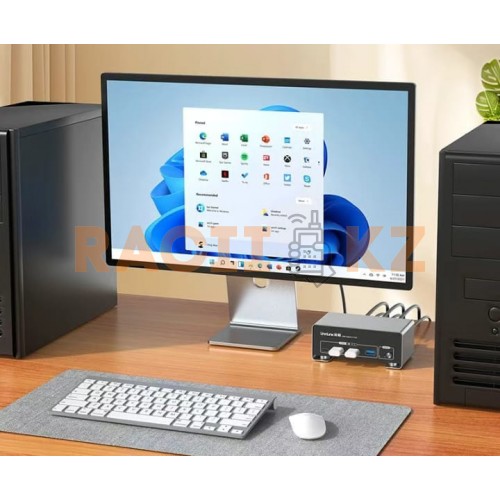 KVM-переключатель Unnlink позволяет подключить два ПК и выводить изображение сразу на два монитора через интерфейсы HDMI и DisplayPort. Устройство поддерживает современные высокие разрешения и частоты обновления, обеспечивая стабильную работу без потери качества сигнала. Поддерживаются режимы расширения и дублирования экрана, что удобно для многозадачной работы и презентаций. Переключение между компьютерами выполняется нажатием кнопки на корпусе или с помощью внешнего контроллера.